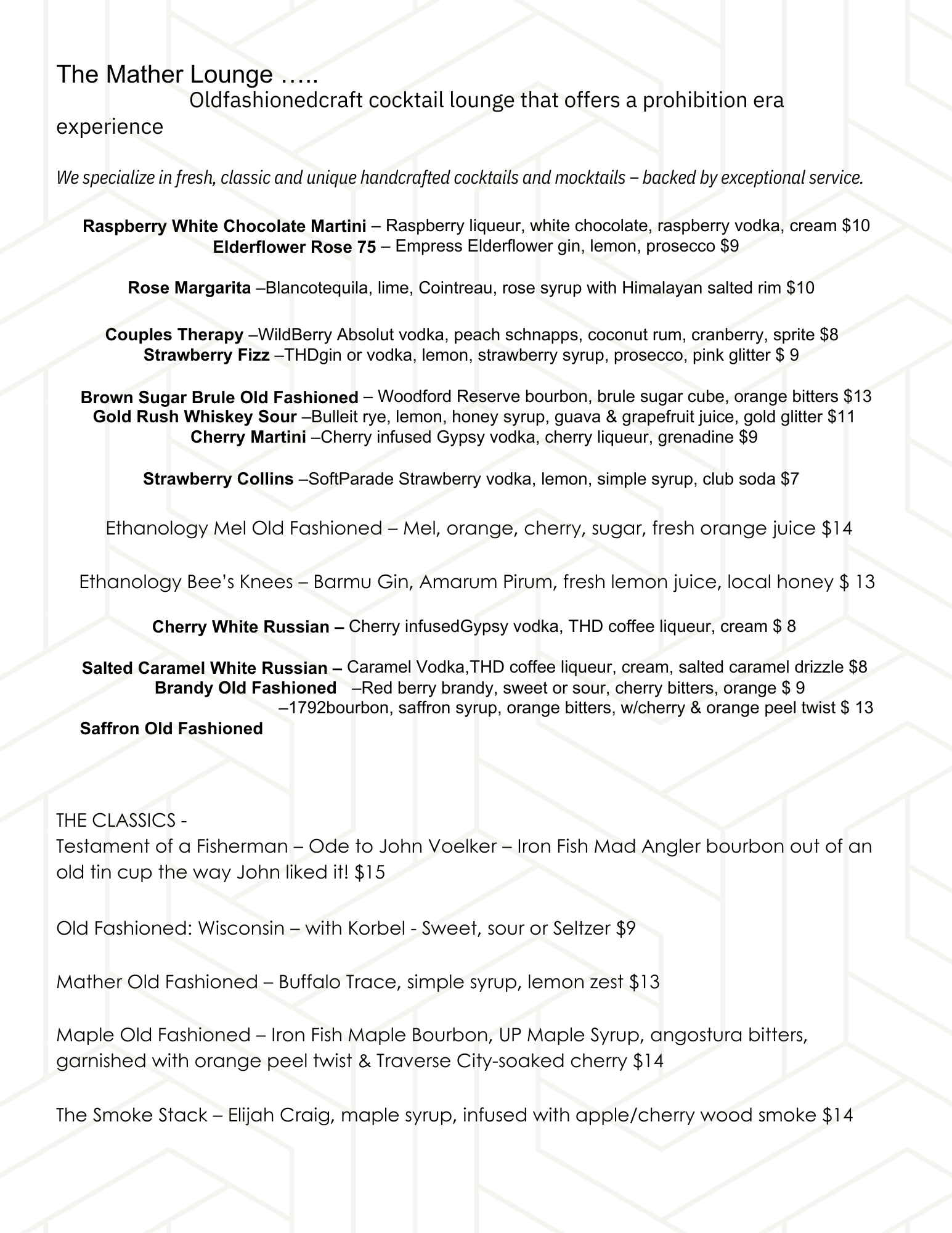 The Mather Lounge has released its February 2026 Specialty Cocktail Menu.